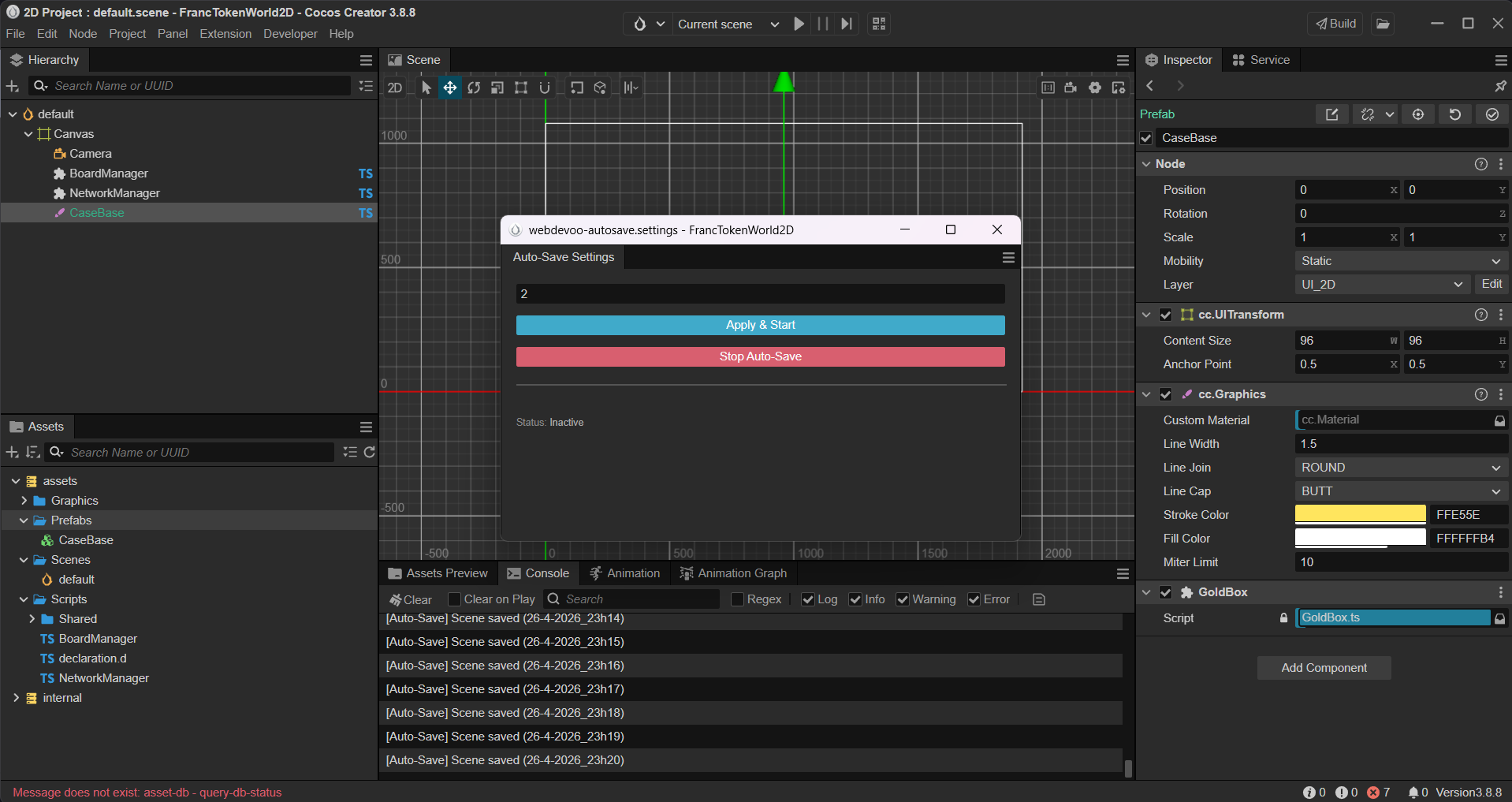 Webdevoo Auto-Save est l'outil indispensable pour tout développeur Cocos Creator 3.8+.